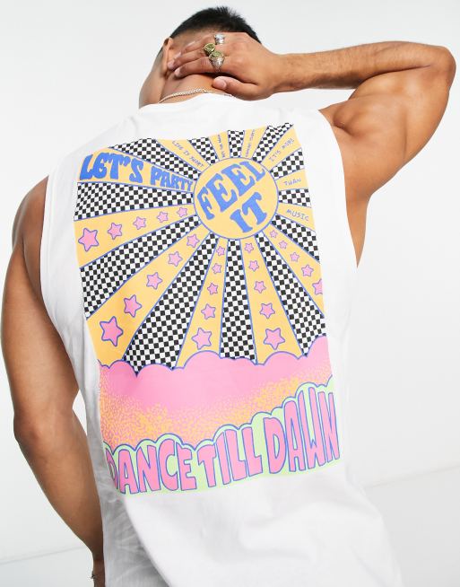 Camiseta blanca extragrande sin mangas con estampado en la espalda "Feel it" de Jack & Jones Originals
