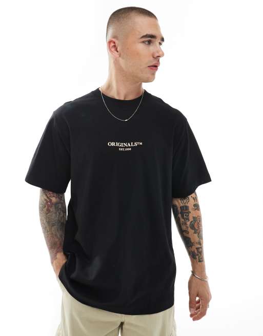 Camiseta negra de corte cuadrado extragrande con logo "Originals" de Jack & Jones