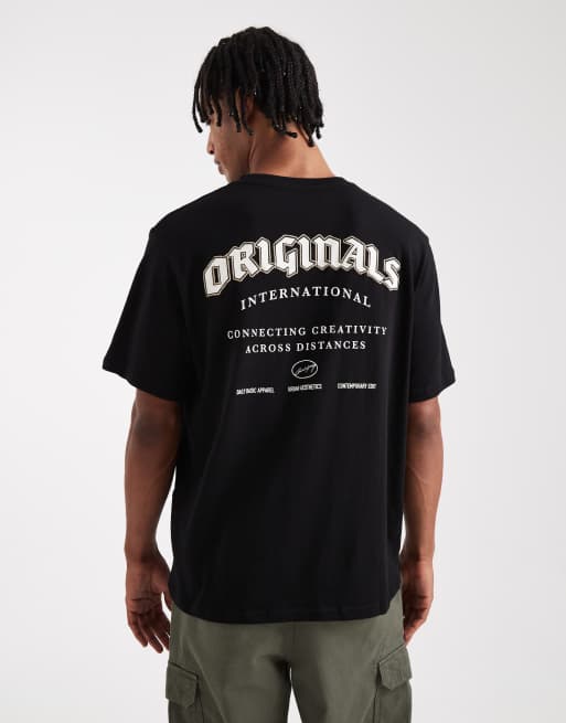 Camiseta negra extragrande con estampado "Originals" de Jack & Jones