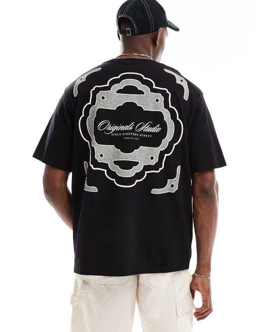 Camiseta negra extragrande con estampado "Originals" en la espalda de Jack & Jones