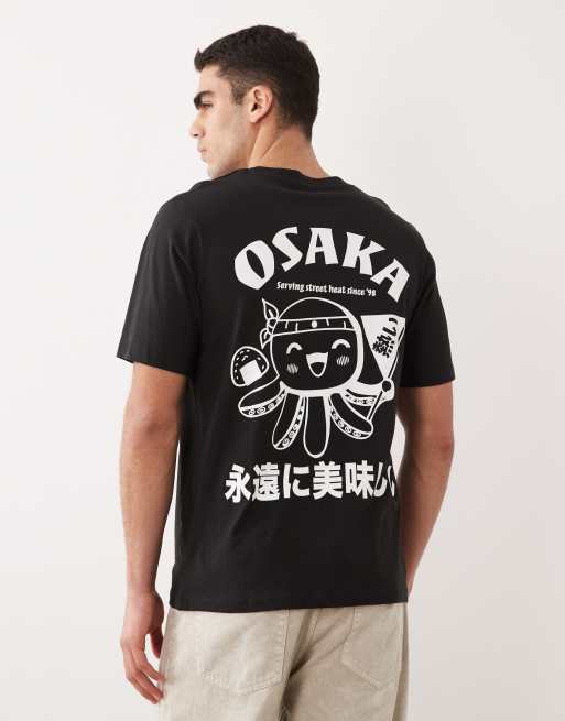 Camiseta negra extragrande con estampado "Osaka" en la espalda de Jack & Jones