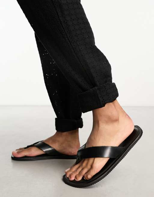Chanclas negras de cuero de Jack & Jones