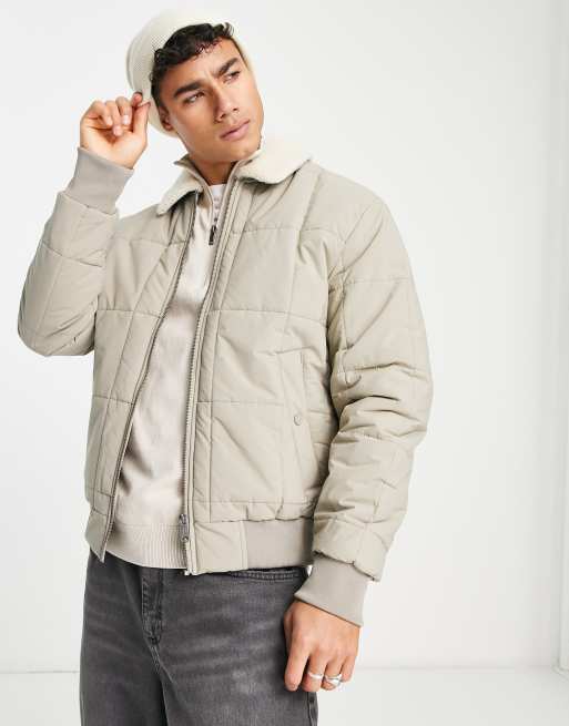 Chaqueta bomber beis guateada con cuello de borreguito de Jack & Jones Premium
