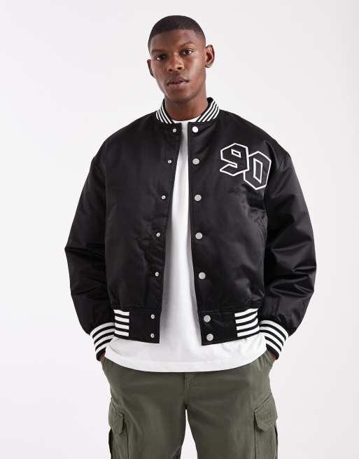 Chaqueta bomber negra de estilo universitario de Jack & Jones