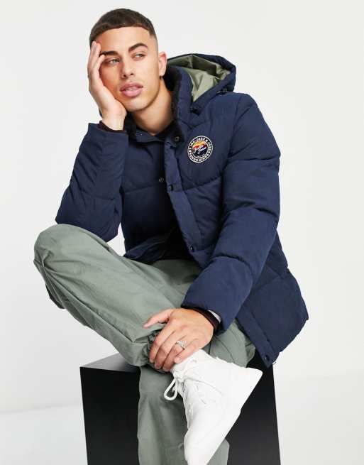 Chaqueta de plumas azul marino con capucha y cuello de borreguito de Jack & Jones