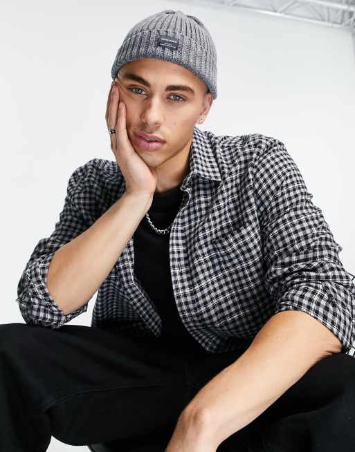 Gorro gris de estilo pescador con parche del logo de Jack & Jones