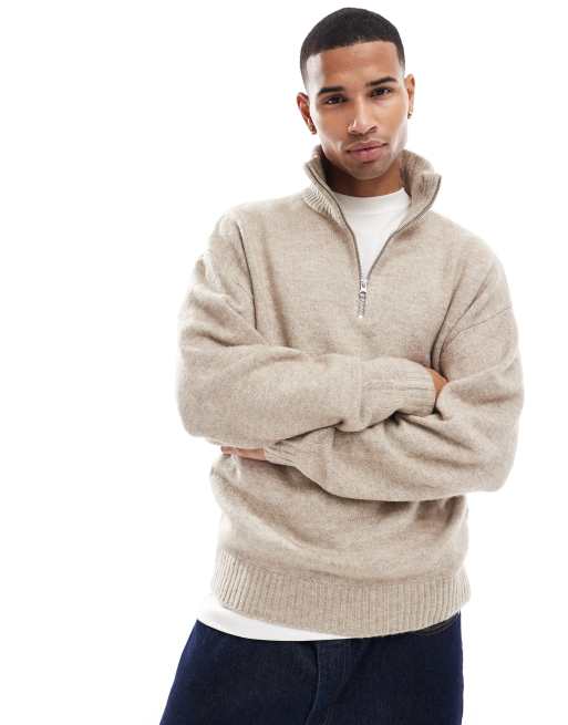 Jersey beis extragrande con media cremallera de punto mullido de Jack & Jones