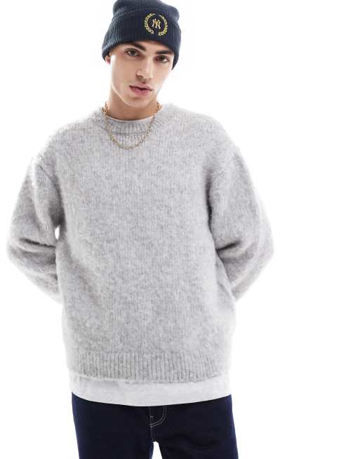 Jersey gris extragrande de punto mullido de Jack & Jones