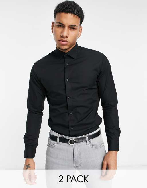 Pack de 2 camisas de vestir negras de corte slim de Jack & Jones Essentials
