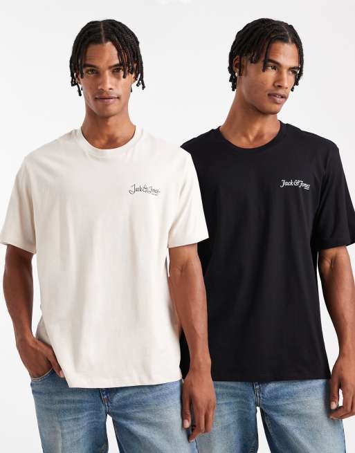 Pack de 2 camisetas de color negro y beis con logo de Jack & Jones