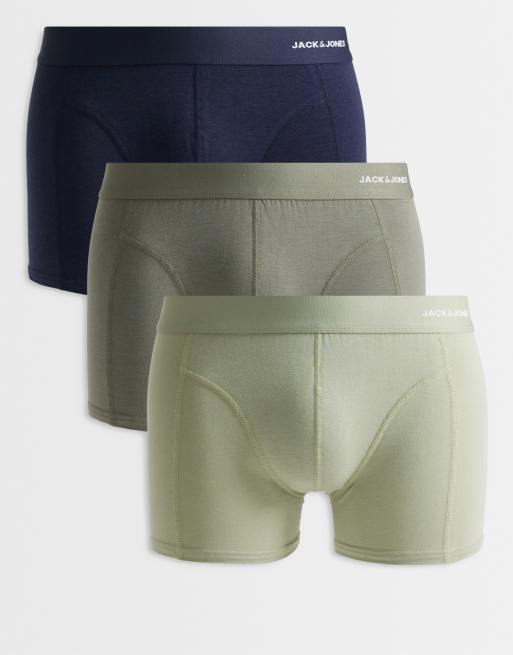 Pack de 3 calzoncillos de color azul marino y verde de bambú de Jack & Jones