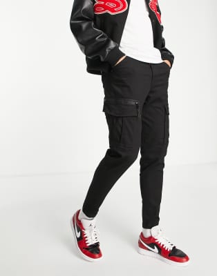 Pantalones cargo negros de corte tapered de Jack & Jones
