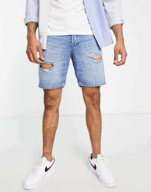 Pantalones cortos vaqueros azul claro rasgados de corte holgado de Jack & Jones Intelligence