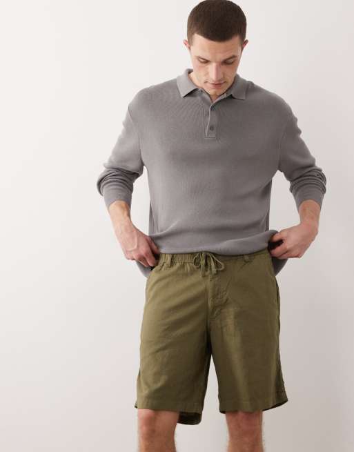 Pantalones cortos verdes con cordón ajustable de mezcla de lino de Jack & Jones