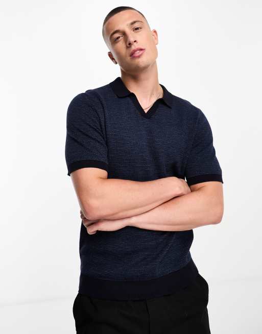 Polo azul marino con cuello de solapas de punto texturizado de Jack & Jones Premium