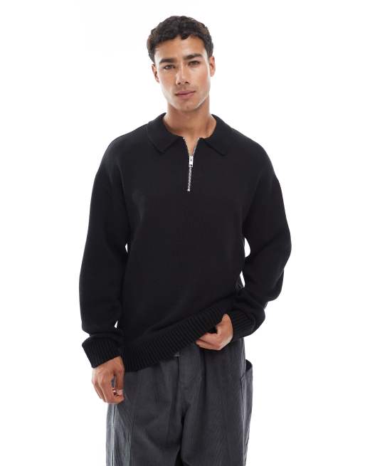 Polo negro extragrande con cremallera corta de punto de Jack & Jones
