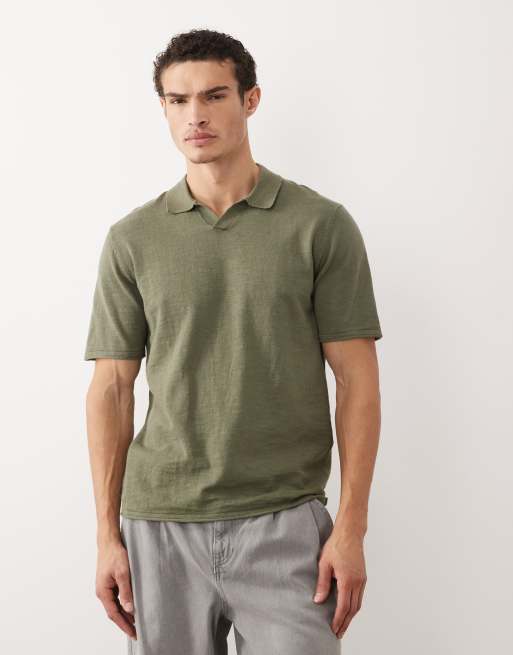 Polo verde caqui con cuello abierto de punto de Jack & Jones