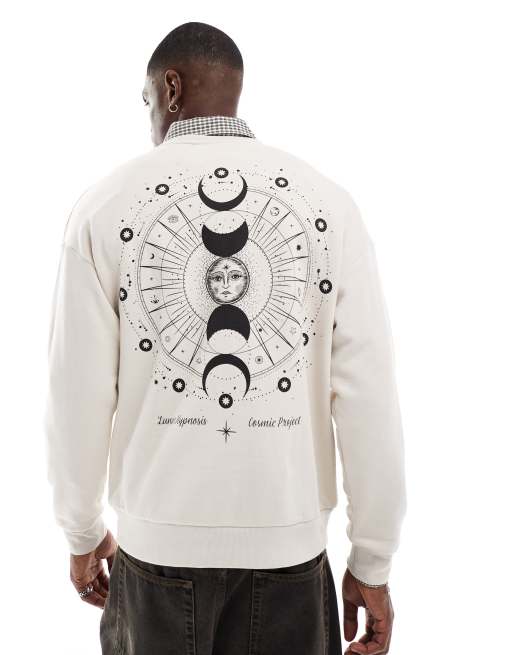Sudadera beis con estampado celestial en la espalda, cuello redondo y sisas caídas de Jack & Jones