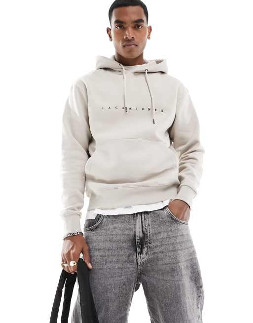 Sudadera beis extragrande con capucha y logo en el pecho de Jack & Jones