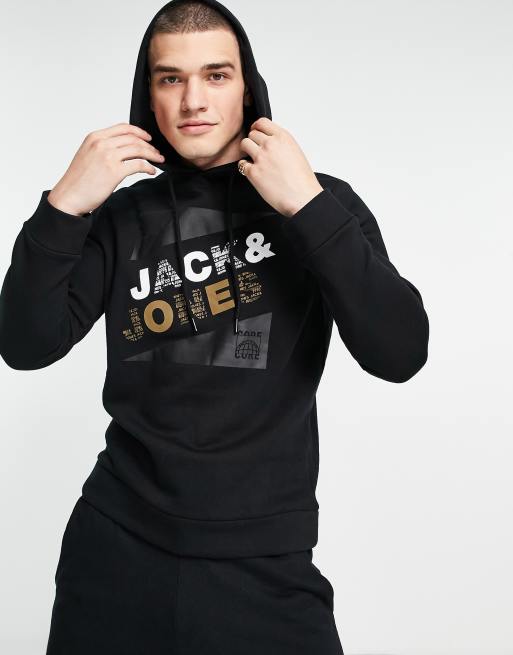 Sudadera negra con capucha y logo grande sin cierres de Jack & Jones