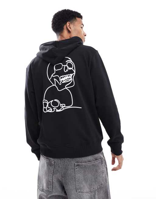 Sudadera negra extragrande con capucha y estampado de calavera en la espalda de Jack & Jones