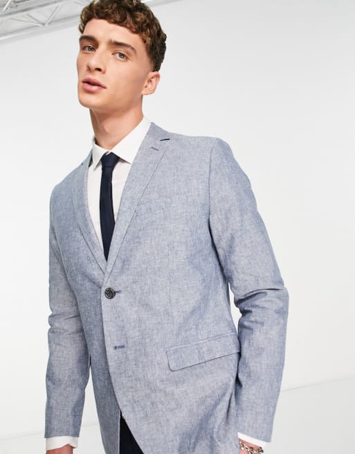 Traje azul claro de corte slim de mezcla de lino de Jack & Jones Premium
