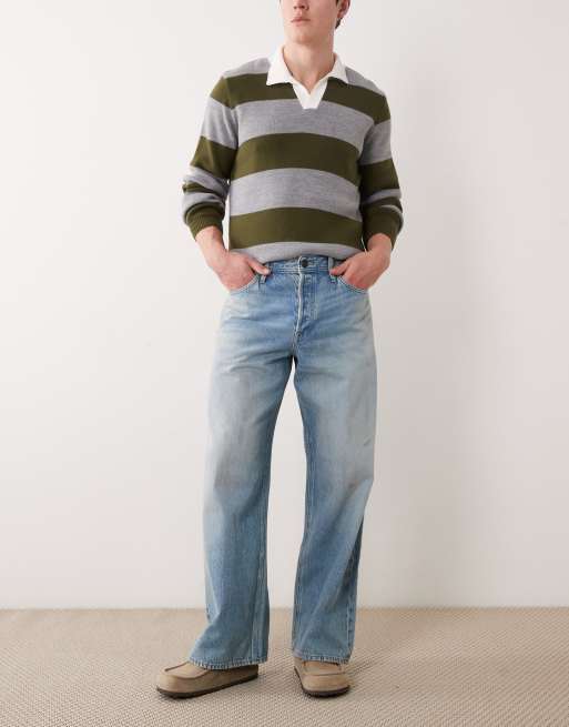 Vaqueros azul medio de pernera ancha con lavado deslucido Dave de Jack & Jones