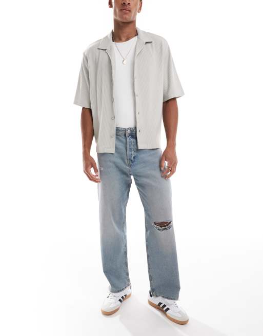 Vaqueros azules holgados con lavado a la piedra y rodillas rasgadas Alex de Jack & Jones