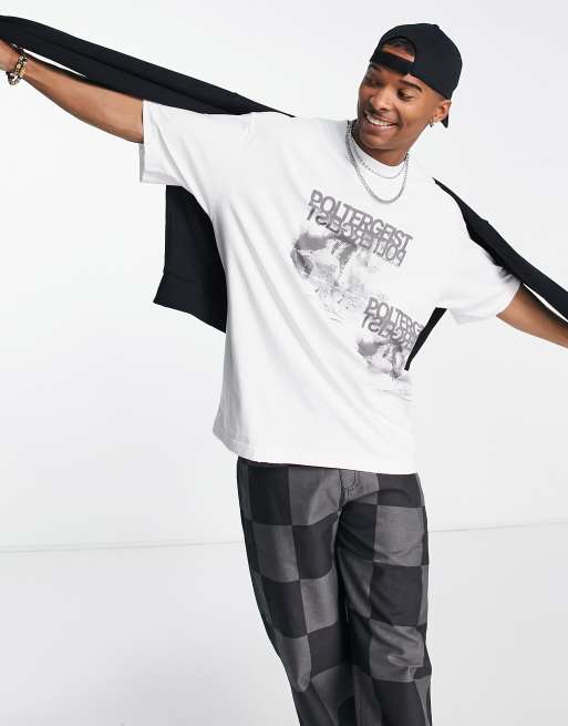 Camiseta blanca extragrande con estampado "Poltergeist" de Jaded London