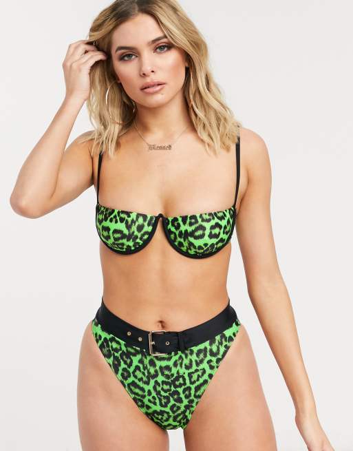Top de bikini verde con aros y estampado de leopardo de Jaded London
