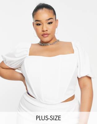 Top blanco estilo corsé con mangas abullonadas de Jaded Rose Plus (parte de un conjunto)