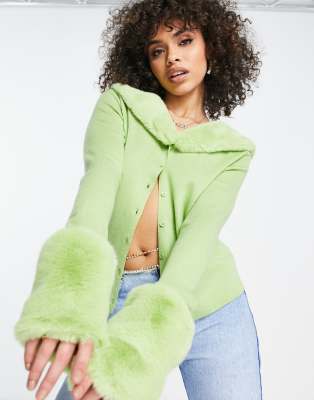 Cárdigan verde con detalle de piel sintética estilo años 90 de quita y pon de Jayley