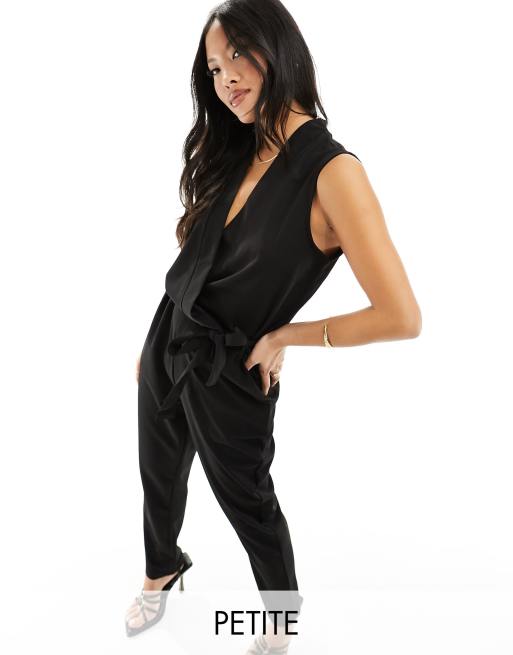 Mono largo negro con cinturón y cuello de pico de JDY Petite
