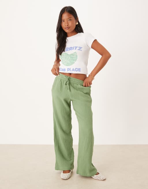 Pantalones verdes de pernera ancha de bambula de JDY Petite