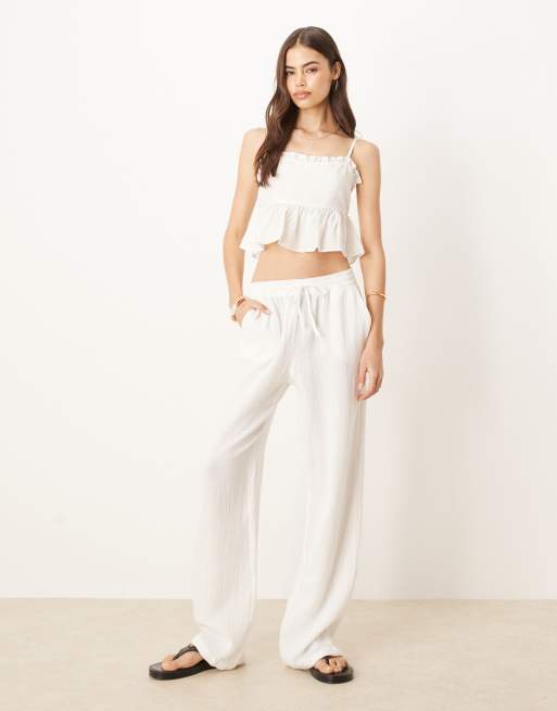 Pantalones blanco hueso de pernera ancha de bambula de JDY Tall