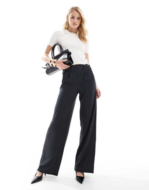 Pantalones gris oscuro de pernera ancha con raya diplomática de JDY Tall