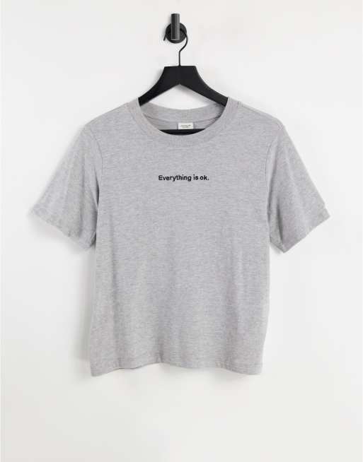 Camiseta gris claro con eslogan "Everything is ok" de JDY