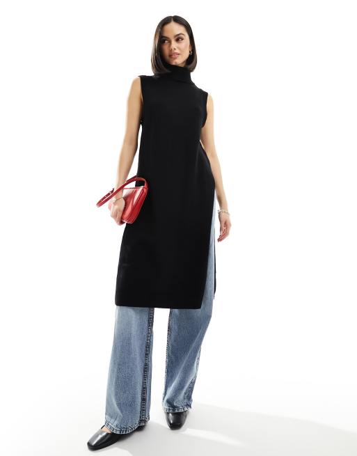 Camiseta larga negra sin mangas de punto de JDY