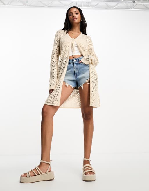 Cárdigan largo color crema de croché de JDY