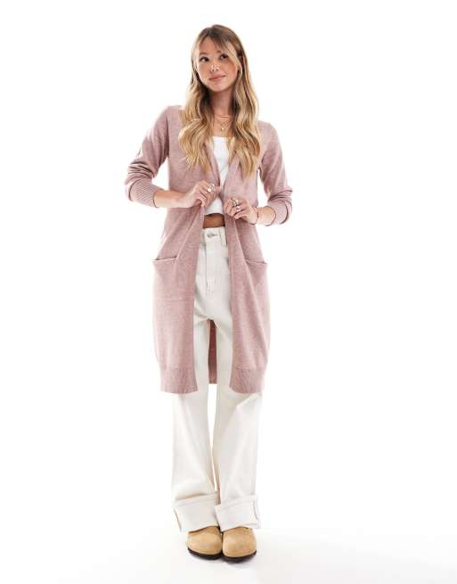 Cárdigan largo rosa empolvado de JDY