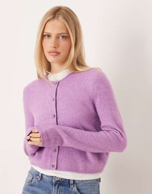 Cárdigan morado con cuello redondo de mezcla de lana de JDY