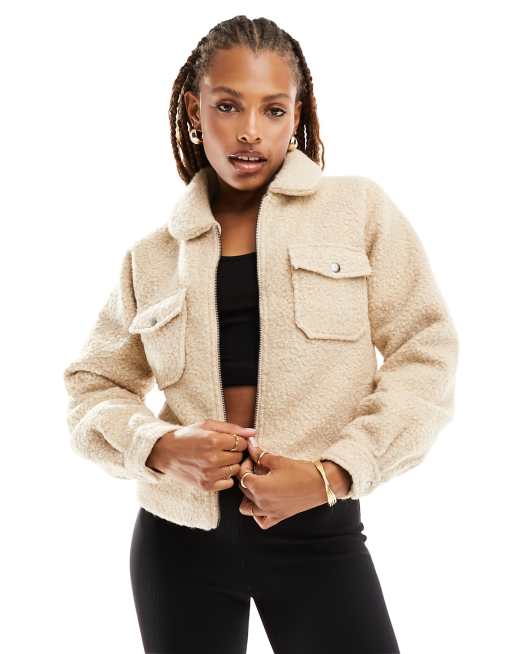 Chaqueta color camel de tejido efecto peluche de JDY