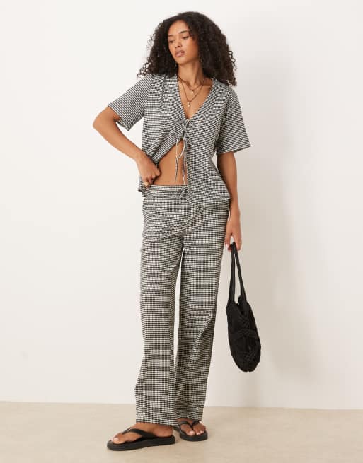 Pantalones a cuadros vichy negros de pernera ancha de sirsaca de JDY (parte de un conjunto)