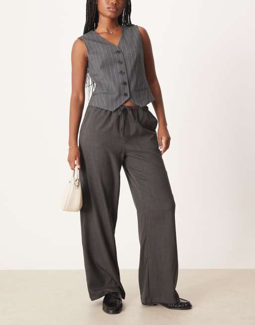 Pantalones de pernera ancha gris oscuro con detalle de lazada de JDY