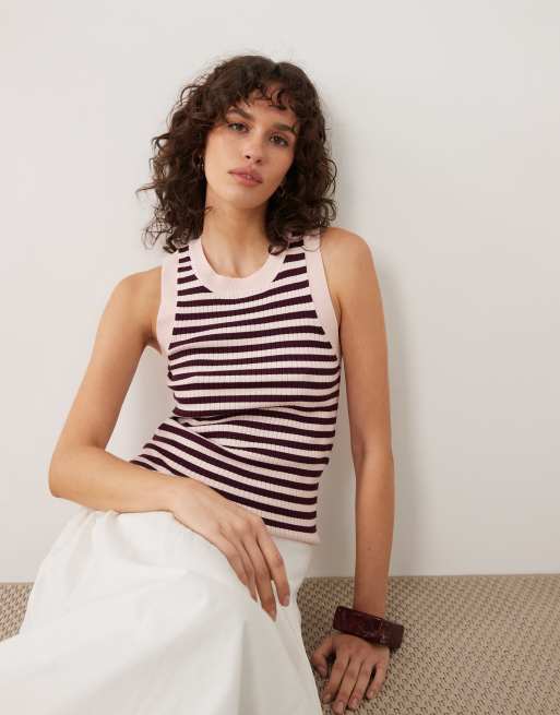 Top a rayas rosas y burdeos sin mangas de punto de JDY