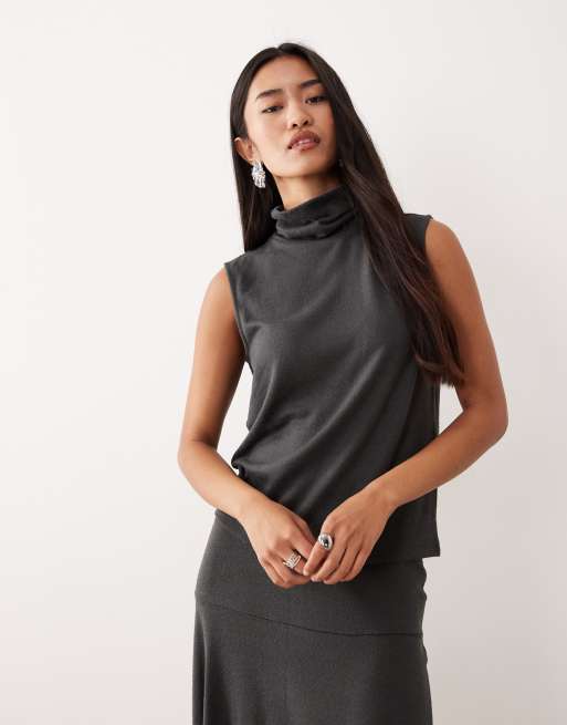 Top gris oscuro sin mangas con cuello vuelto de JDY (parte de un conjunto)