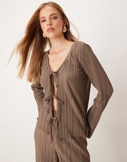 Top marrón plisado con lazada delantera de JDY (parte de un conjunto)
