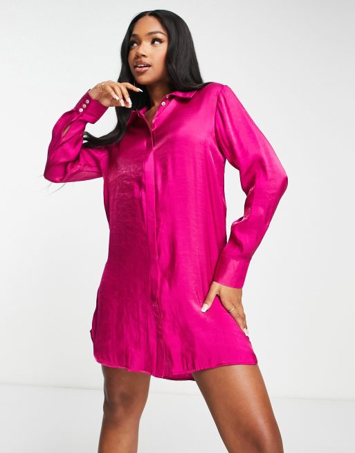 Vestido camisero corto rosa luminoso de satén exclusivo de JDY