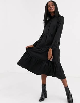 Vestido camisero largo con diseño a capas en negro de JDY