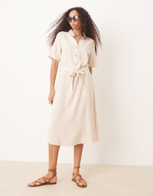 Vestido camisero midi beis de mezcla de lino de JDY